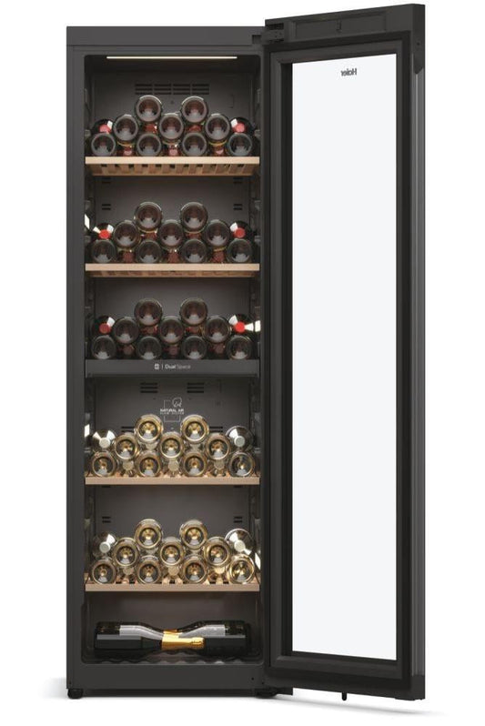 Cantinetta Vino Haier Wine Bank 60 Serie 7 Doppia Temperatura 137 Bottiglie Classe F Ripiani in Legno colore Nero