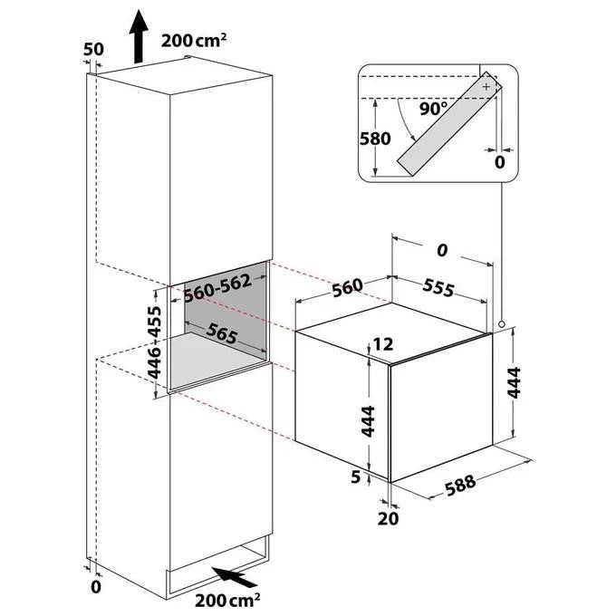 - Dimensioni del compartimento: 56 cm x 56,5 cm x 44,6 cm