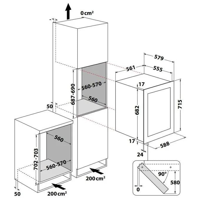 - Dimensioni del compartimento: Minima 68,7 cm / Massima 69 cm