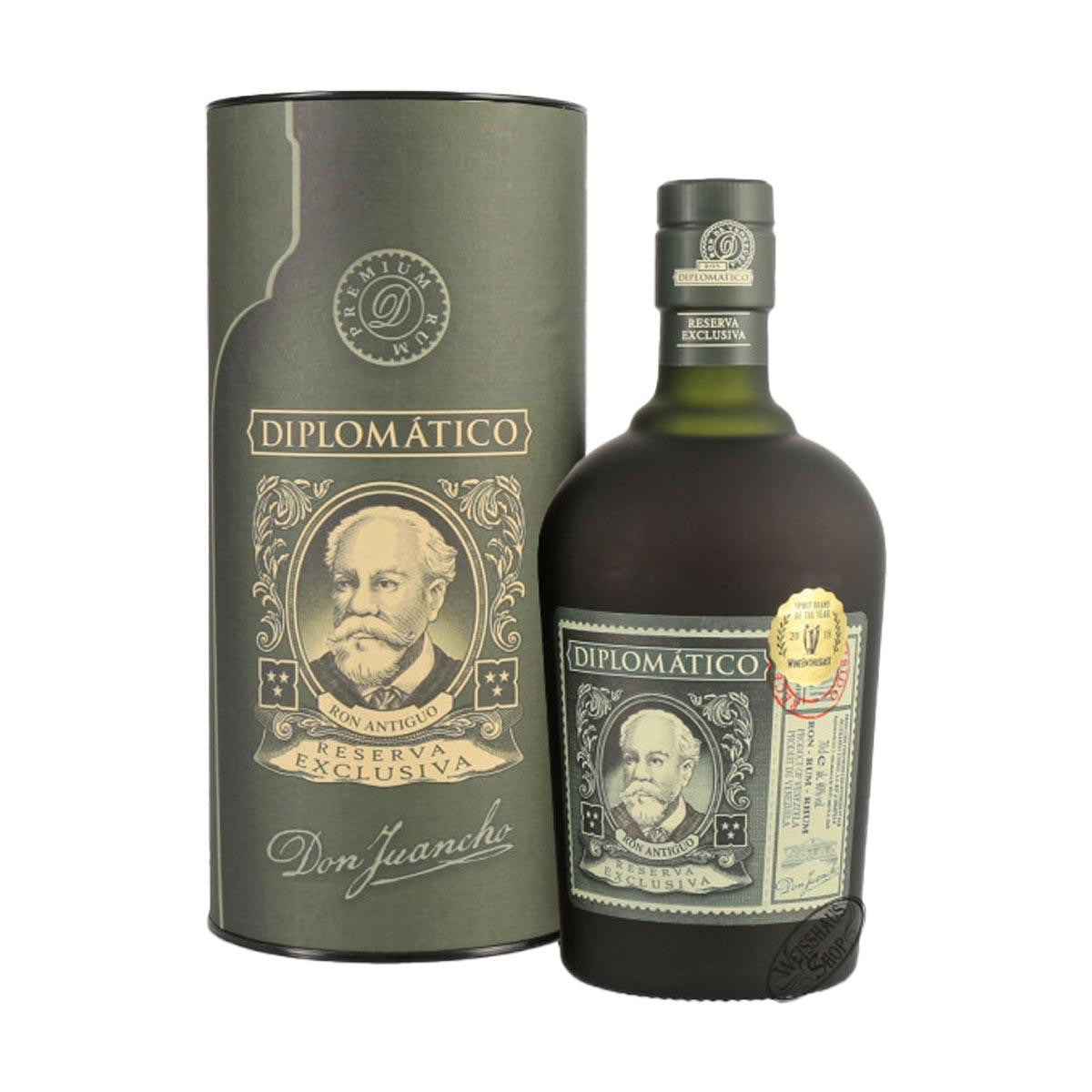 Il "Diplomático Reserva Exclusiva" è un pregiato rum venezuelano prodotto ai piedi delle Ande. Questa raffinata creazione è frutto di un blend di rum distillato principalmente in alambicchi a pala e una minore quantità in colonne. Dopo la miscelazione, il rum viene invecchiato per 12 anni prima di essere imbottigliato e messo in vendita. Di colore ambrato scuro con riflessi dorati, il rum offre delicati profumi di vaniglia, cacao e foglie di tabacco essiccate, arricchiti da note di scorza d'arancia, canna da zucchero e chiodi di garofano. Al palato, si presenta dolce e etereo, con note di rovere, resina di albero e un piacevole finale di acero e frutta essiccata. Il rum si abbina perfettamente al cioccolato fondente ed è ottimo da gustare liscio o in abbinamento a un sigaro.